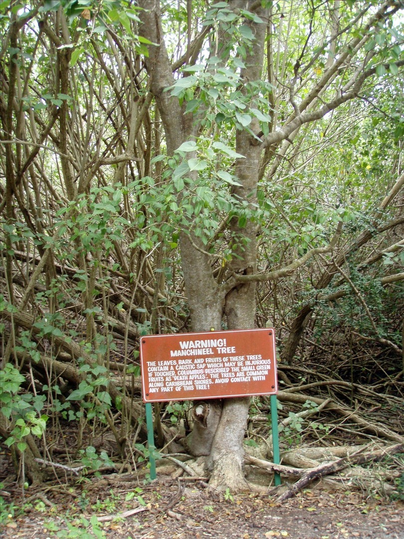 "المنشنيل" شجرة تنمو على شواطئ فلوريدا وفي عدة أماكن أخرى من اميركا وجزر الهند الغربية. ويبلغ طولها من ثلاثة إلى 15م. ولشجرة المنشنيل قلف بني فاتح وأفرع طويلة متدلية. أما الأوراق فهي بيضية الشكل حادة الحواف يبلغ طولها عشرة سنيتمترات. وبينما تكون زهرتها أرجوانية اللون فإن ثمارها تشبه التفاح البري الحامض. لشجر المنشنيل سائل سام خطر يجري في أوعيتها تكفي نقطة واحدة منه لإحداث بثور على سطح جلد الإنسان، وفاكتها يعتقد بأنها تؤدي إلى الوفاة بمجرد أكلها، لذا فالإسبان أطلقوا عليها اسم "تفاحة الموت الصغيرة". أما الدخان الناتج من حرق هذه الأشجار فهو كاف لإحداث حالة من العمى المؤقت.