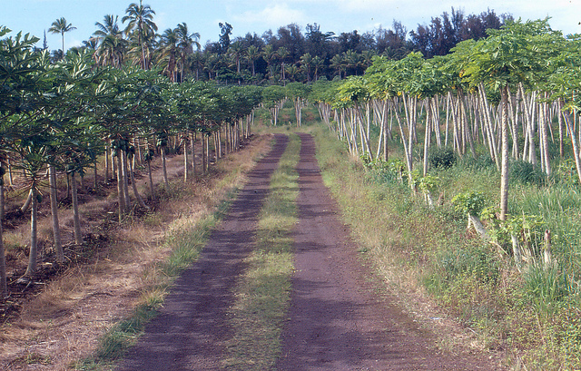 البابايا في ظاهرها شجرة إلا أنها في الواقع نبتة عشبية ضخمة تنمو بمعدل كبير يصل إلى 10 أمتار. وهي بخلاف كل الأعشاب الضخمة الأخرى، ثنائية المسكن، أي أن الذكور منها تحمل الزهور المذكرة فقط والإناث تحمل المؤنثة فقط. كما أنها عادة لا تتفرع منها الأغصان ما لم تشذب. وهي متحملة ممتازة للجفاف والمناخ القاسي.