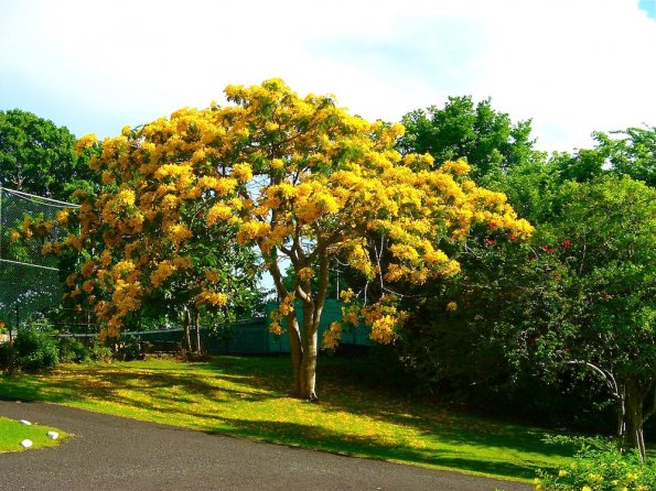 أسماء أخرى للشجرة: بلتوفروم، بونسيانا ذهبية، شجرة اللهب الأصفر، فلامبويانت صفراء