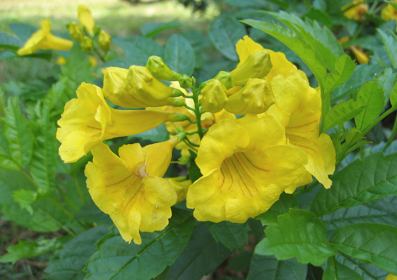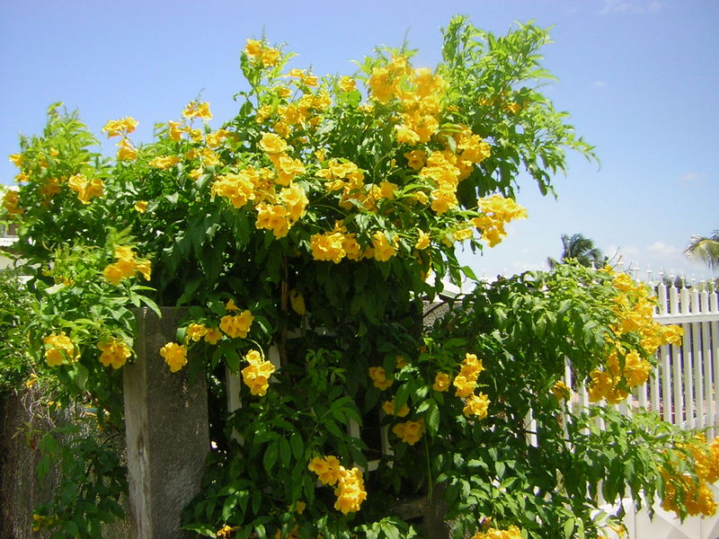 متسلقة التيكوما شجيرة متوسطة الحجم تتميز بأنها قوية التحمل والصبر وفي ذات الوقت تعطي أزهارها الصفراء بغزارة في أشد أنواع الحر والجفاف.