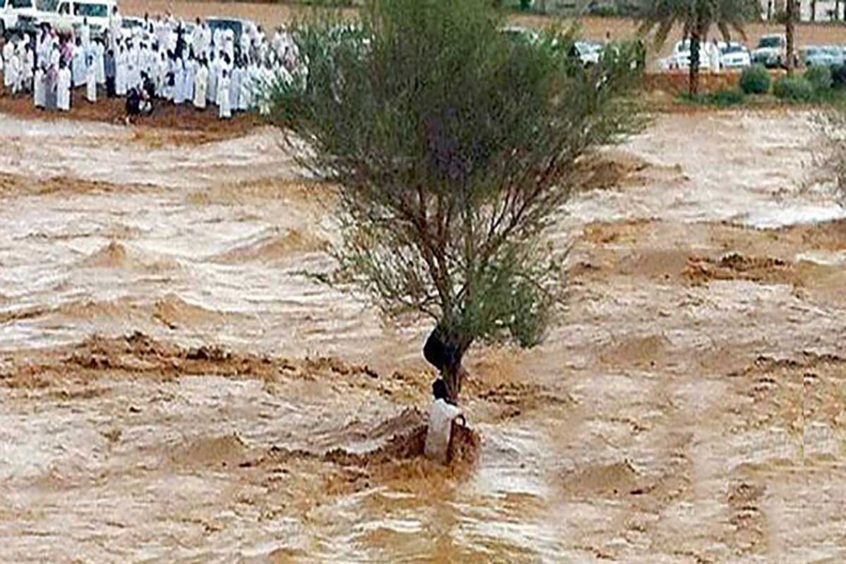 حققت صورة التقطت لشابين تحاصرهما السيول في منطقة حائل، اليوم السبت 27 إبريل/ نيسان، رواجاً واسعاً على مواقع التواصل الاجتماعي، حيث ظهرا وسط السيول، وهما يتعلقان بساق شجرة كانت سبيلهما إلى النجاة، فيما ذكر الدفاع المدني السعودي “ أنه أنقذ الشابين بعد جهود بمشاركة أشخاص متواجدين في المكان“.