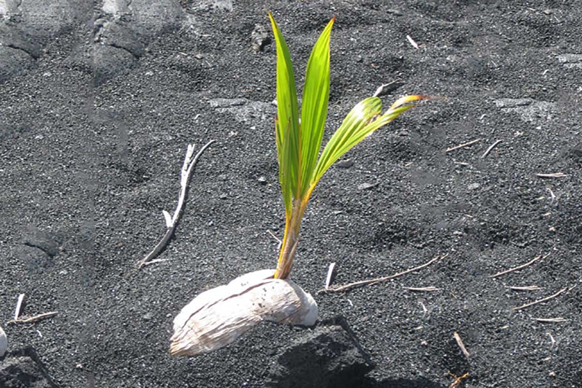 لكي تبدأ زراعة جوز الهند من البذرة، يفضل أن تترك القشرة الليفية الخارجية على الثمرة بحالتها دون نزعها.