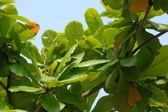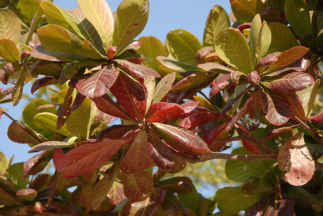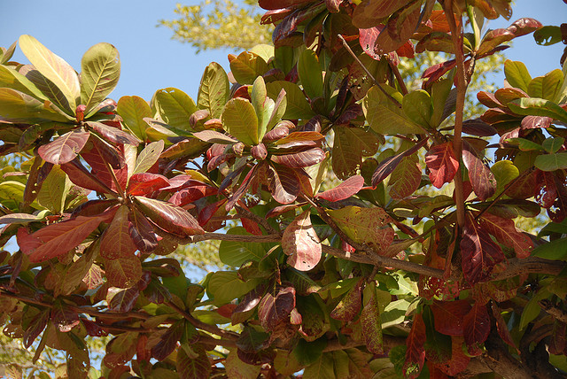 اللوز الهندي شجرة ضخمة يمكن أن يصل طولها إلى 30 متر، وهي تتميز بالحجم الكبير لأوراقها التي تتحول إلى اللون الأحمر والذهبي قبل تساقطها.
