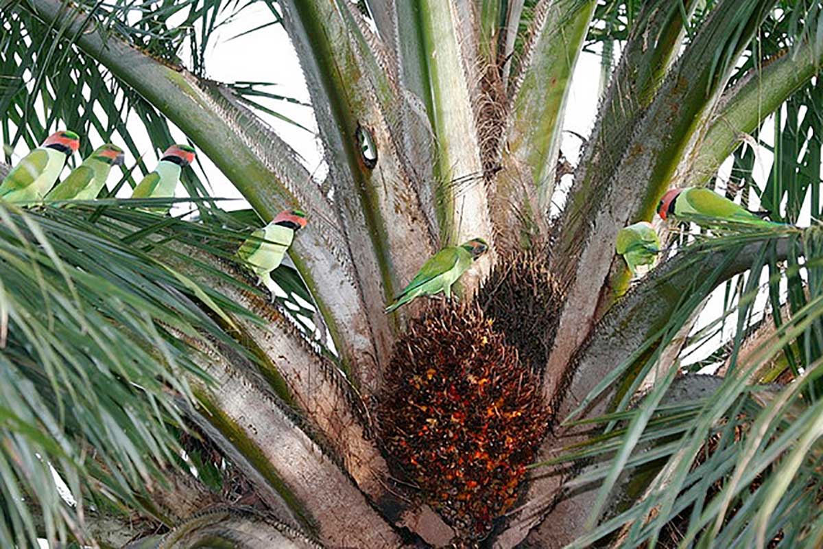 نخلة الزيت تزرع أساسًا للزيت المستخرج من ثمارها. الثمار تنمو في عناقيد مثل البلح إلا أنها بدون عراجين، وتتكون أساساً من قشرة ناعمة خارجية برتقالية اللون تكتسي حمرة عند النضج، وطبقة ليفية تغطي الجوز، وتتألف من قشرة سميكة ونواة تحتوي على زيت النخيل.
