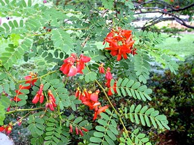 البازلاء البرازيلية أو السيسبان الرجّاج شجرة خضراء زاهية، ذات أوراقية زوجية متقابلة. تعطي الشجرة زهور جذابة جداً في مجموعات عناقيد متدلية. تنتج (…)